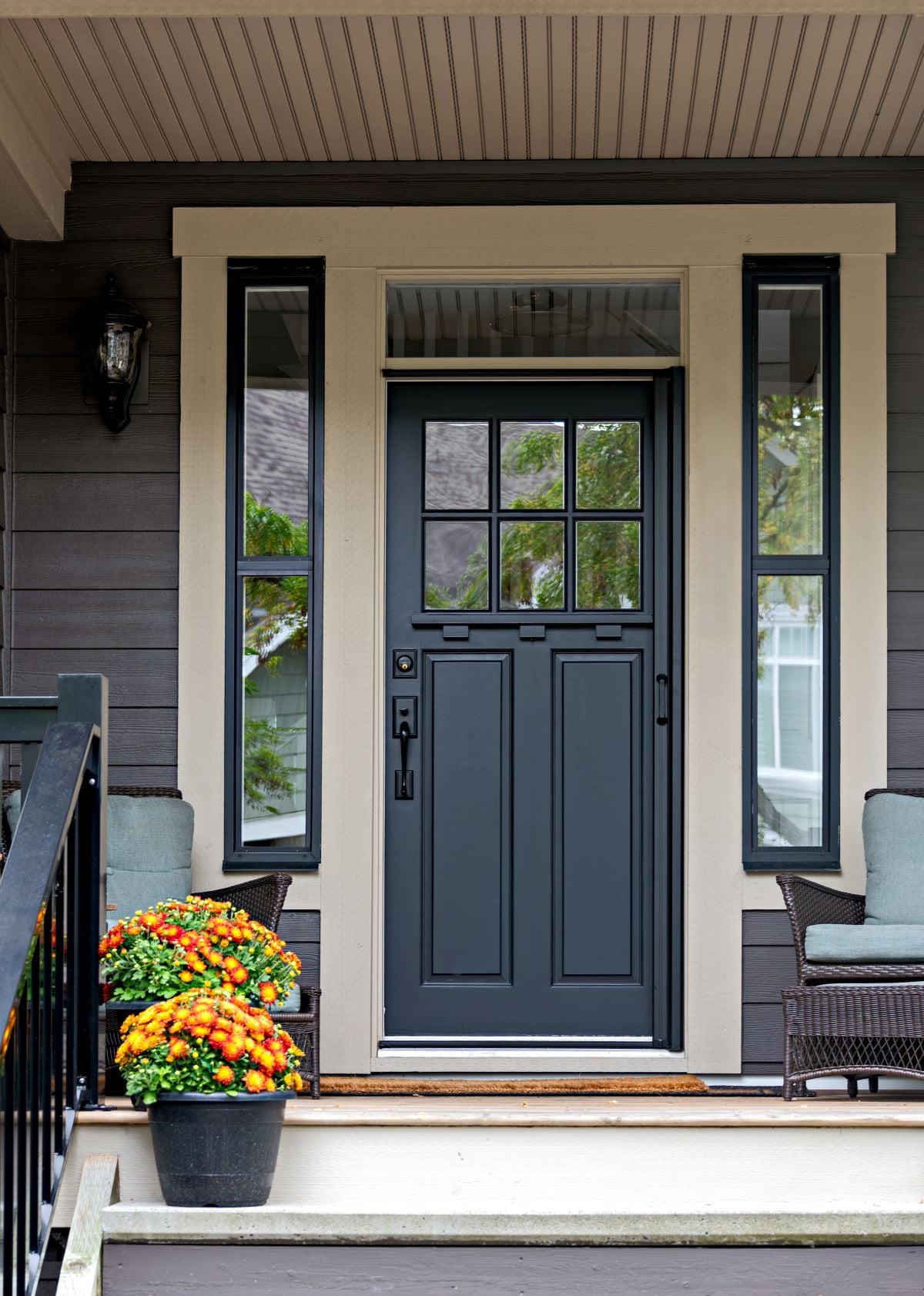 Black remains one of the most timeless and versatile front door colors. It pairs well with nearly any exterior and adds a sense of sophistication.
